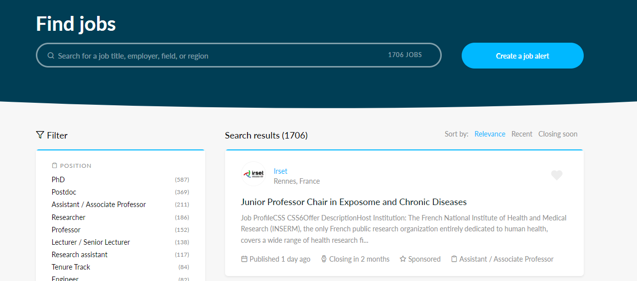 AcademicPositions 招聘网站界面